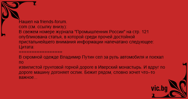 автомобилю Владимира Владимировича. Только после долгих уговоров ослик