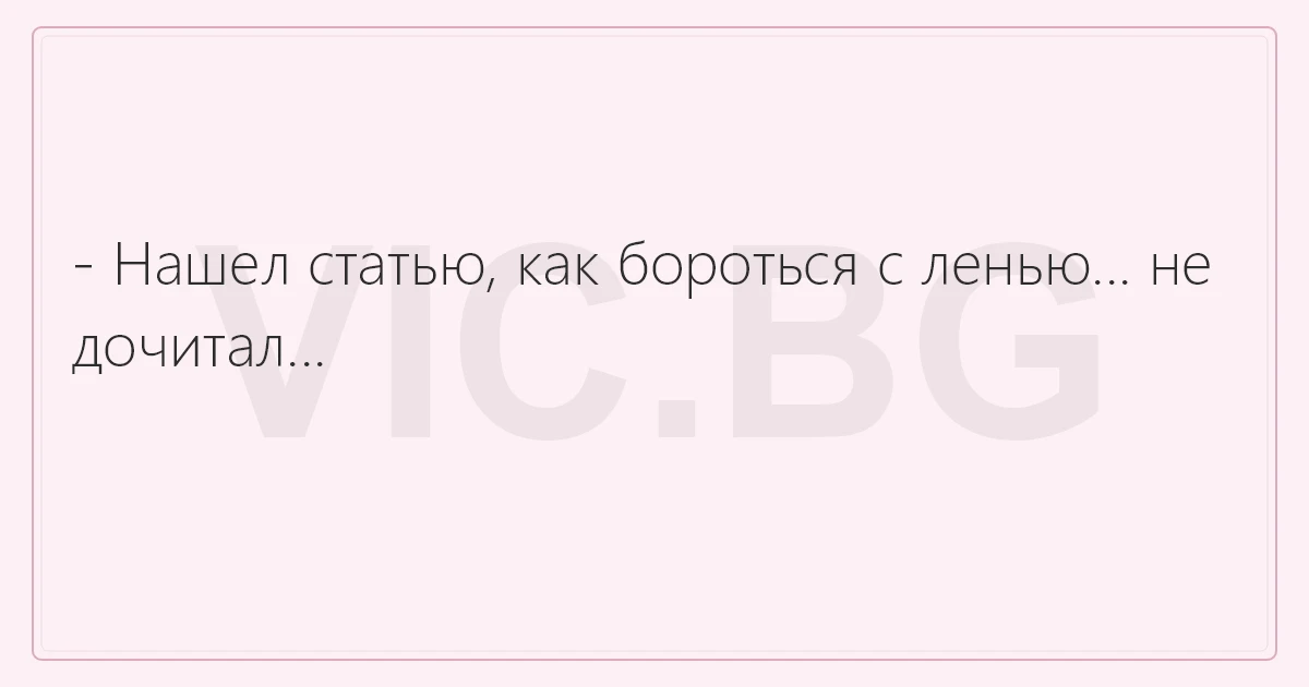 - Нашел статью, как бороться с ленью... не дочитал...