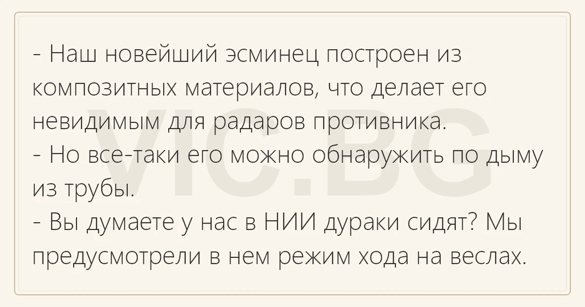- Вы думаете у нас в НИИ дураки сидят? Мы предусмотрели в нем режим хода на веслах.