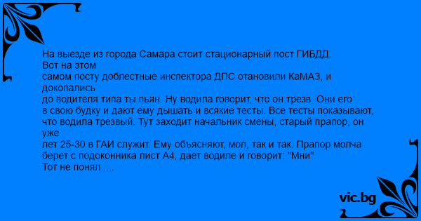 берет с подоконника лист А4, дает водиле и говорит: "Мни".