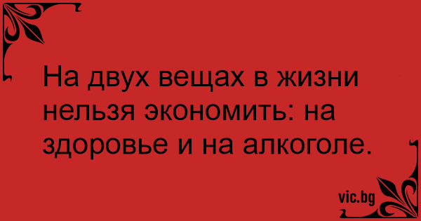 На двух вещах в жизни нельзя экономить: на здоровье и на алкоголе.