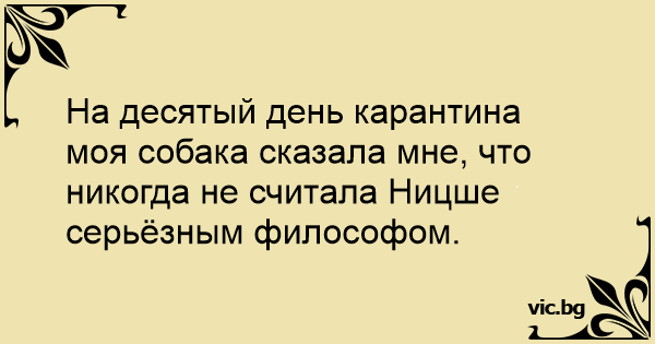 На десятый день карантина моя собака сказала мне, что никогда не считала Ницше серьёзным философом.