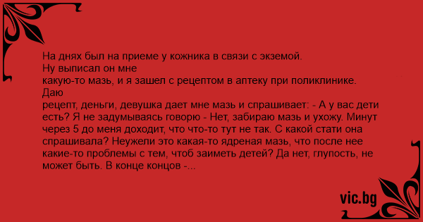 есть? Я не задумываясь говорю - Нет, забираю мазь и ухожу. Минут