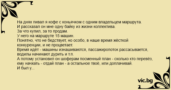 На днях пивал я кофе с коньячком с одним владельцем маршрута.