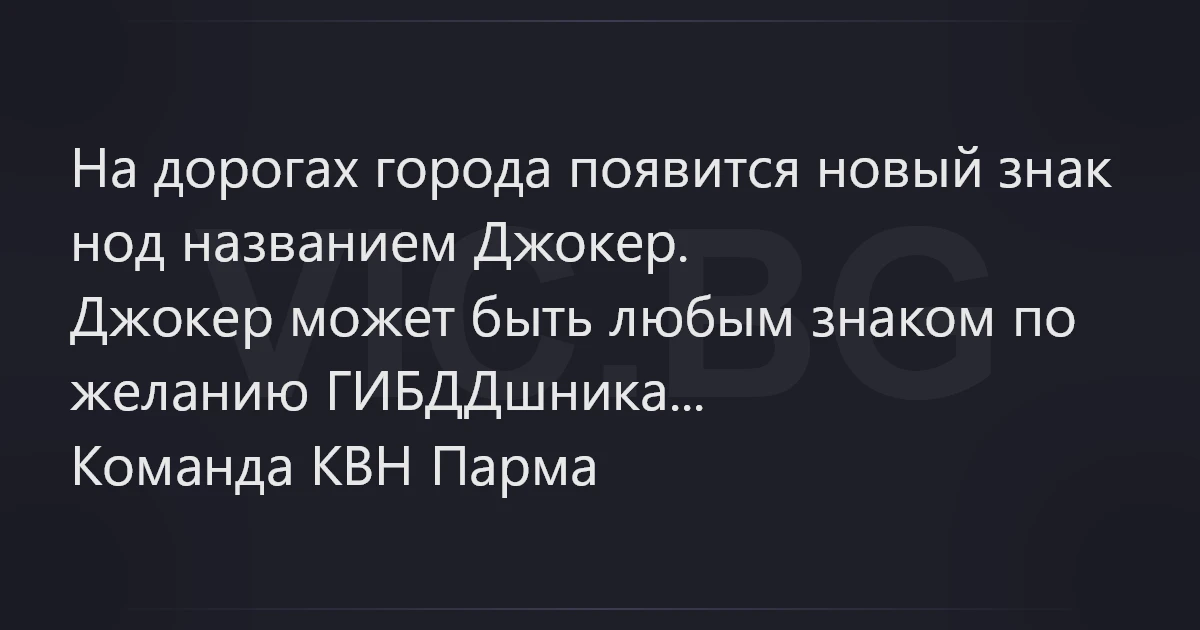 На дорогах города появится новый знак нод названием Джокер. Джокер может быть любым знаком по желанию ГИБДДшника... Команда КВН Парма