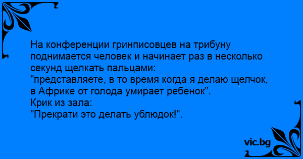 На конференции гринписовцев на трибуну поднимается человек и начинает раз в несколько секунд щелкать пальцами: