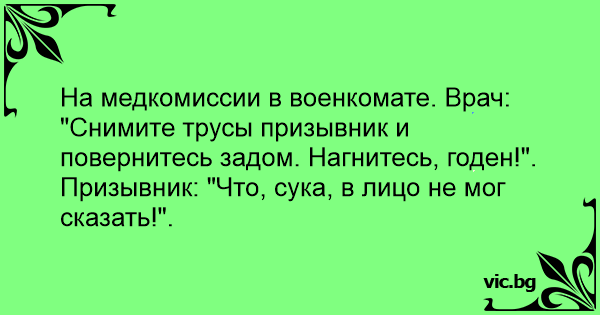 "Снимите трусы призывник и повернитесь задом. Нагнитесь, годен!".