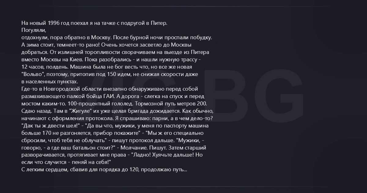 На новый 1996 год поехал я на тачке с подругой в Питер.