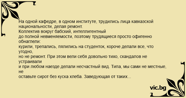 На одной кафедре, в одном институте, трудились лица кавказской национальности, делая ремонт.