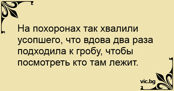 На похоронах так хвалили усопшего, что вдова два раза подходила к гробу, чтобы посмотреть кто там лежит.