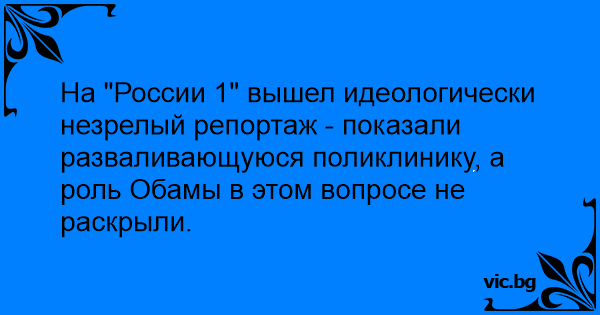 На "России 1" вышел идеологически незрелый репортаж - показали разваливающуюся поликлинику, а роль Обамы в этом вопросе не раскрыли.<br />
