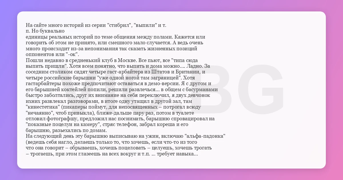 Пошли недавно в средненький клуб в Москве. Все пьют, все "типа сюда
