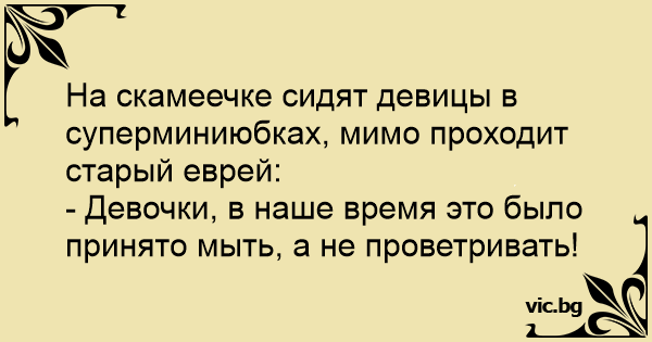 На скамеечке сидят девицы в суперминиюбках, мимо проходит старый еврей: