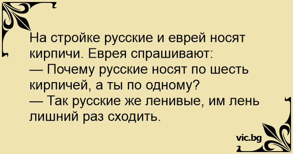 На стройке русские и еврей носят кирпичи. Еврея спрашивают: