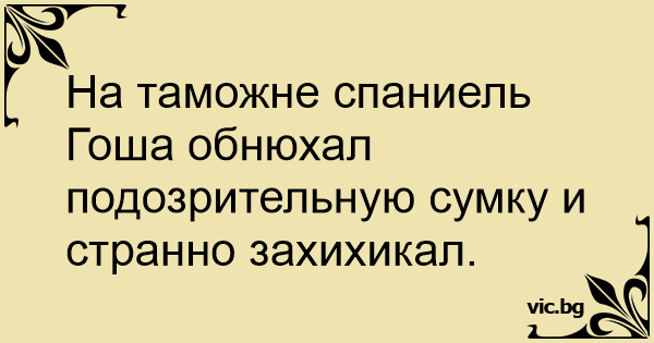 На таможне спаниель Гоша обнюхал подозрительную сумку и странно захихикал.
