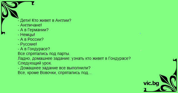 - Мам, а кто в Гондурасе живет? А она мне: Мне до ж..ы кто там живет!
