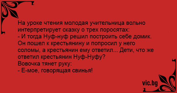 На уроке чтения молодая учительница вольно интерпретирует сказку о трех поросятах: