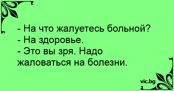 - Это вы зря. Надо жаловаться на болезни.