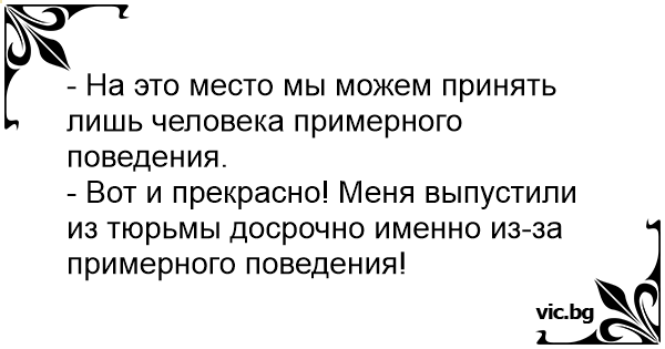 - Вот и прекрасно! Меня выпустили из тюрьмы досрочно именно из-за примерного поведения!