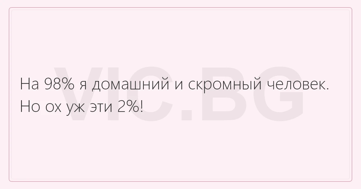 На 98% я домашний и скромный человек.