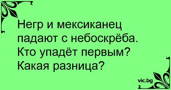 Heгp и мексиканец падают с небоскрёба. Кто упадёт первым?<br />Какая разница?