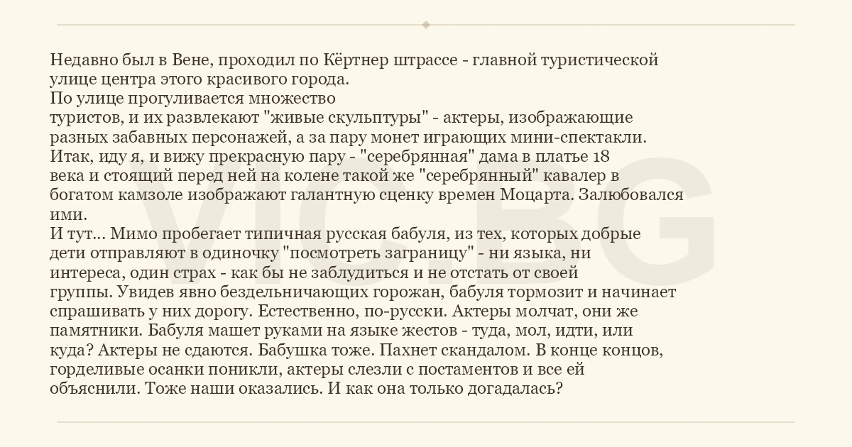 И тут... Мимо пробегает типичная русская бабуля, из тех, которых добрые