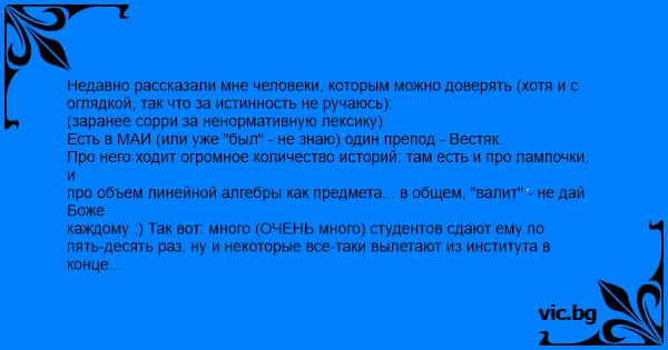 Есть в МАИ (или уже "был" - не знаю) один препод - Вестяк.
