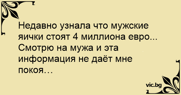 Недавно узнала что мужские яички стоят 4 миллиона евро...