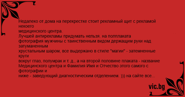 Недалеко от дома на перекрестке стоит рекламный щит с рекламой некоего медицинского центра.