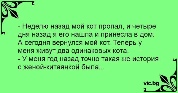 - Неделю назад мой кот пропал, и четыре дня назад я его нашла и принесла в дом.