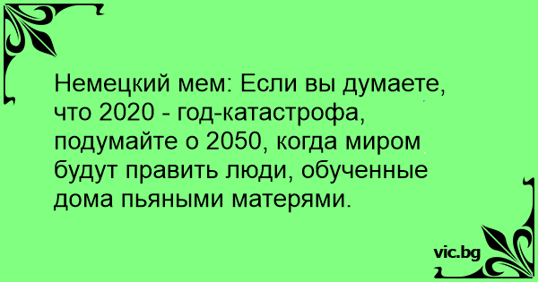 Немецкий мем: Если вы думаете, что 2020 - год-катастрофа, подумайте о 2050, когда миром будут править люди, обученные дома пьяными матерями.