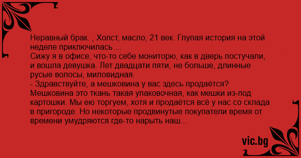 - А может - решил я слегка пошутить - у вас это неравный брак? Помните, как на картине в Третьяковке?