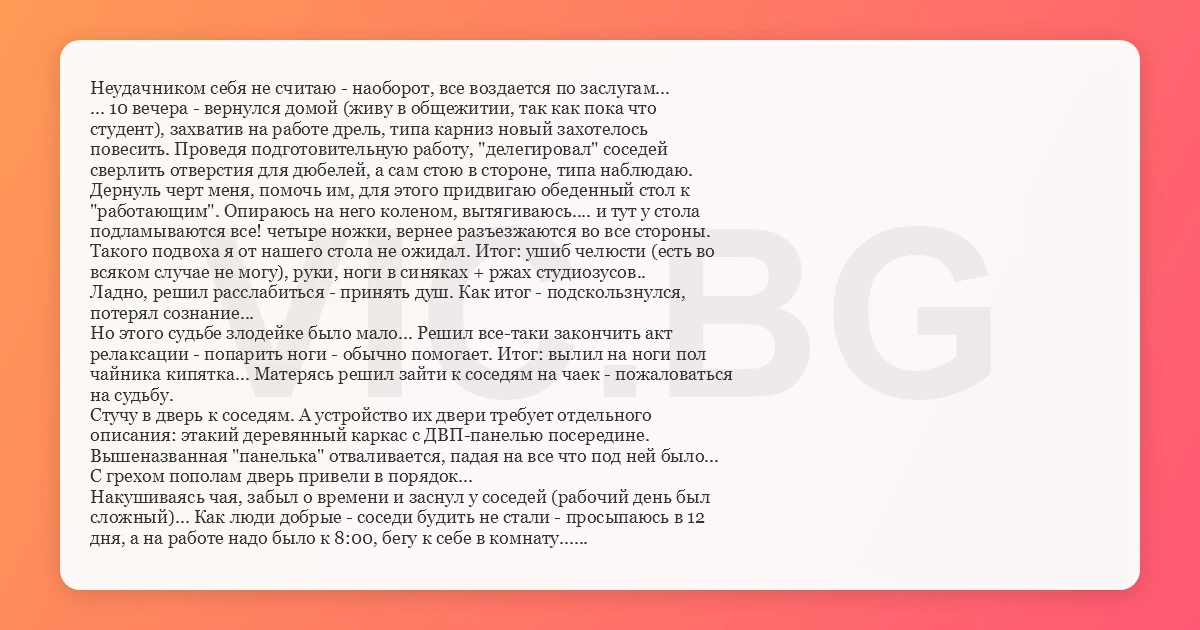 студент), захватив на работе дрель, типа карниз новый захотелось