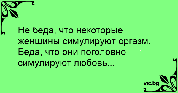 Не беда, что некоторые женщины симулируют оргазм. Беда, что они поголовно симулируют любовь...