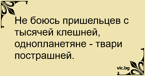 Не боюсь пришельцев с тысячей клешней, однопланетяне - твари пострашней.