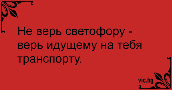 Не верь светофору - верь идущему на тебя транспорту.<br />