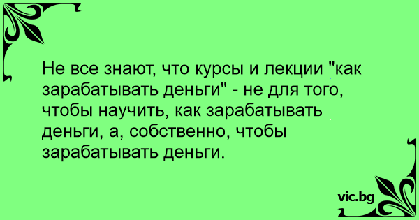 Не все знают, что курсы и лекции "как зарабатывать деньги" - не для того, чтобы научить, как зарабатывать деньги, а, собственно, чтобы зарабатывать деньги.