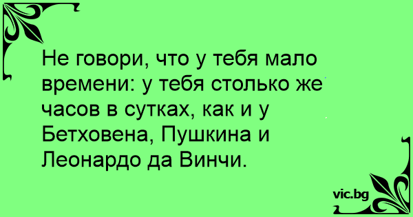 Не говори, что у тебя мало времени: у тебя столько же часов в сутках, как и у Бетховена, Пушкина и Леонардо да Винчи.