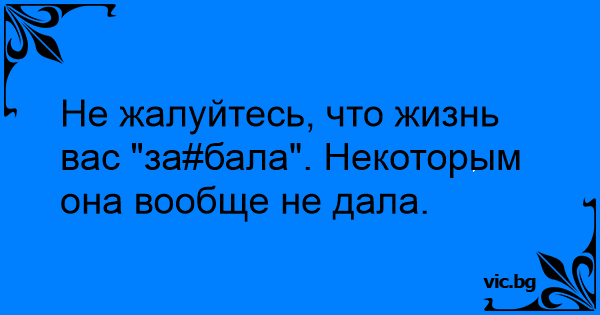 Не жалуйтесь, что жизнь вас "за#бала". Некоторым она вообще не дала.