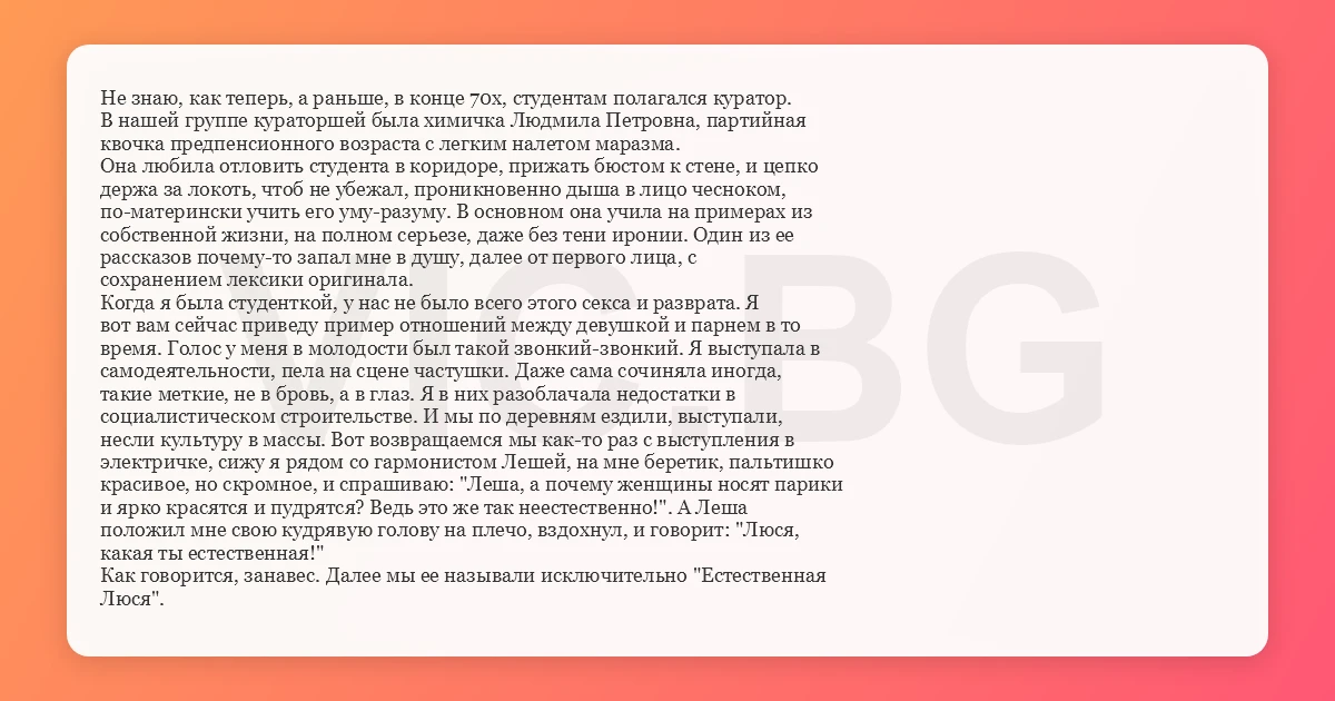 В нашей группе кураторшей была химичка Людмила Петровна, партийная