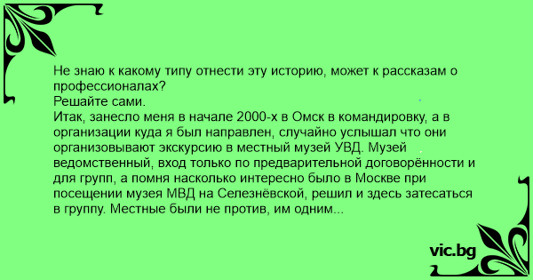 Итак, занесло меня в начале 2000-х в Омск в командировку, а в организации куда я был направлен, случайно услышал что они организовывают экскурсию в местный музей УВД. Музей ведомственный, вход только по предварительной договорённости и для групп, а помня насколько интересно было в Москве при посещении музея МВД на Селезнёвской, решил и здесь затесаться в группу. Местные были не против, им одним больше, одним меньше. Итак, приходим в местный ДК милиции, разумеется имени Дзержинского, через фойе ведут в какой-то коридор, а далее нас встречает этакий говорливый божий одуванчик. Не помню в каком порядке она нам излагала всё, но то что запомнилось: