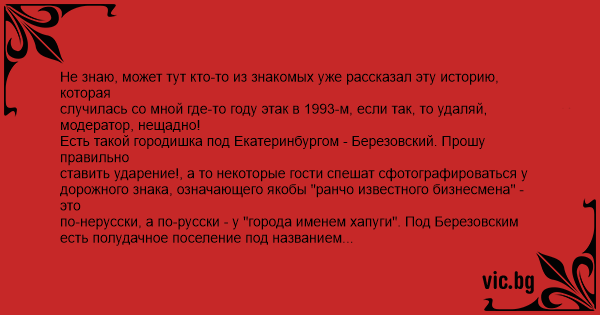 по-нерусски, а по-русски - у "города именем хапуги". Под Березовским