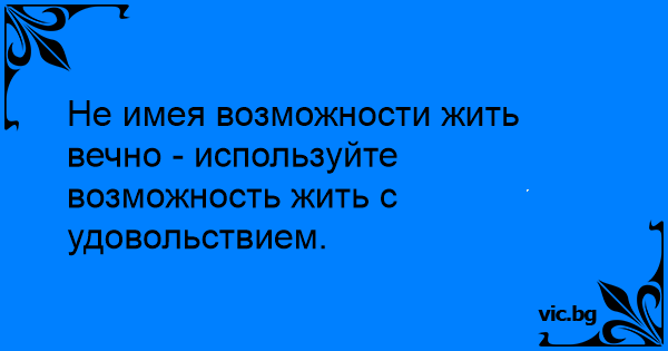 Не имея возможности жить вечно - используйте возможность жить с удовольствием.