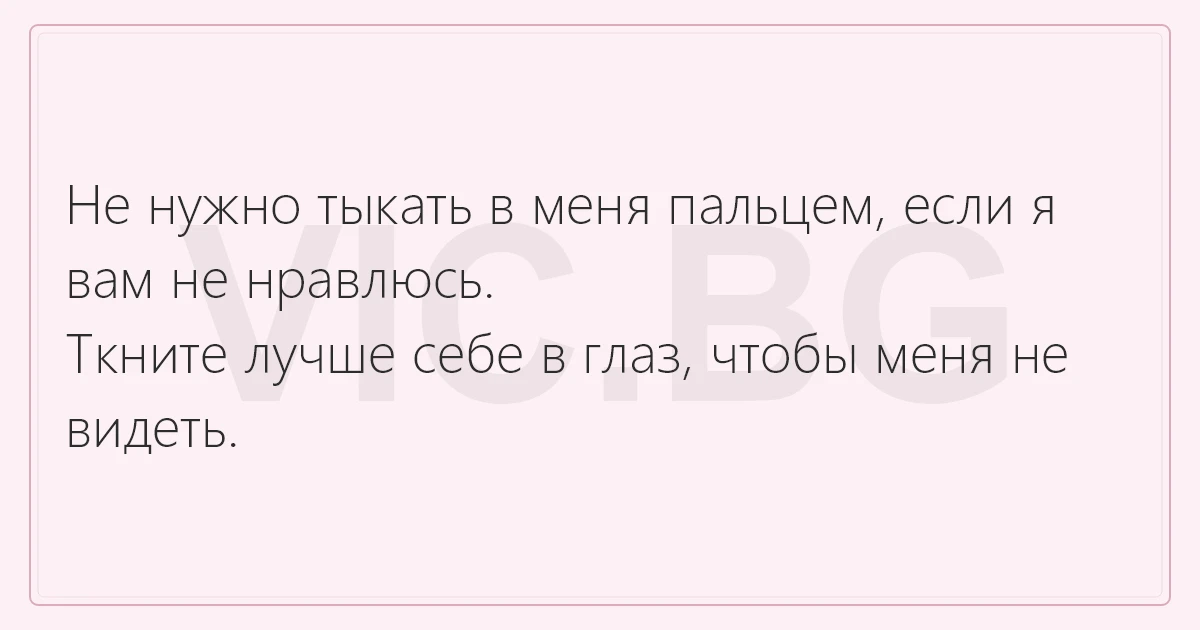 Не нужно тыкать в меня пальцем, если я вам не нравлюсь. Ткните лучше себе в глаз, чтобы меня не видеть.