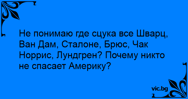 Не понимаю где сцука все Шварц, Ван Дам, Сталоне, Брюс, Чак Норрис, Лундгрен? Почему никто не спасает Америку?