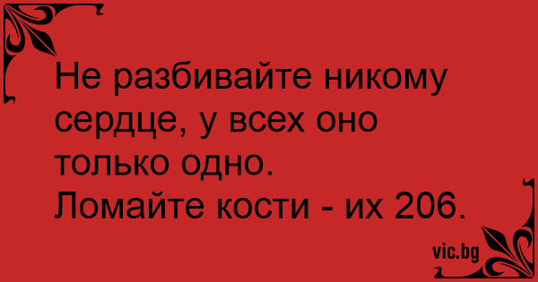 Don't break anybody's heart - they have only one. Break their bones - they have 206.