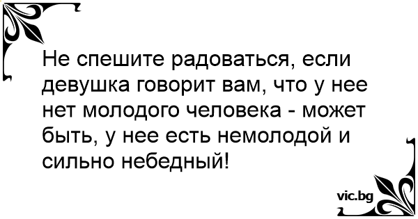 Не спешите радоваться, если девушка говорит вам, что у нее нет молодого человека - может быть, у нее есть немолодой и сильно небедный!