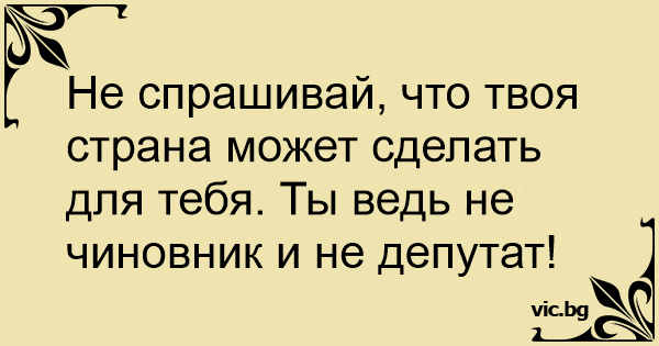 Не спрашивай, что твоя страна может сделать для тебя. Ты ведь не чиновник и не депутат!