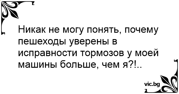 Никак не могу понять, почему пешеходы уверены в исправности тормозов у моей машины больше, чем я?!..