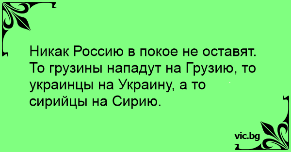 Никак Россию в покое не оставят. То грузины нападут на Грузию, то украинцы на Украину, а то сирийцы на Сирию.